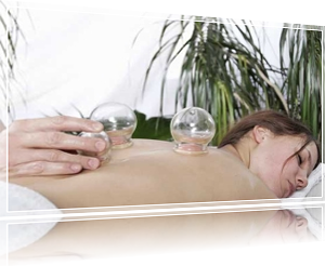 3., Die Schröpfkopfmassage - Hier wird die Haut vor dem Aufsetzen der Schröpfgläser eingeölt und anschließend das Schröpfglas über verschiedene Bereiche gezogen, um durch diese Reize die Durchblutung im Körper anzuregen und zu verbessern.